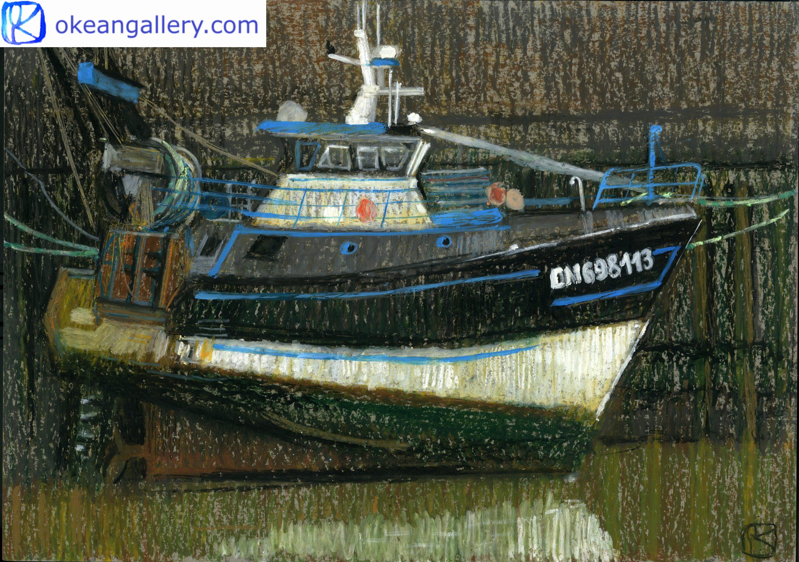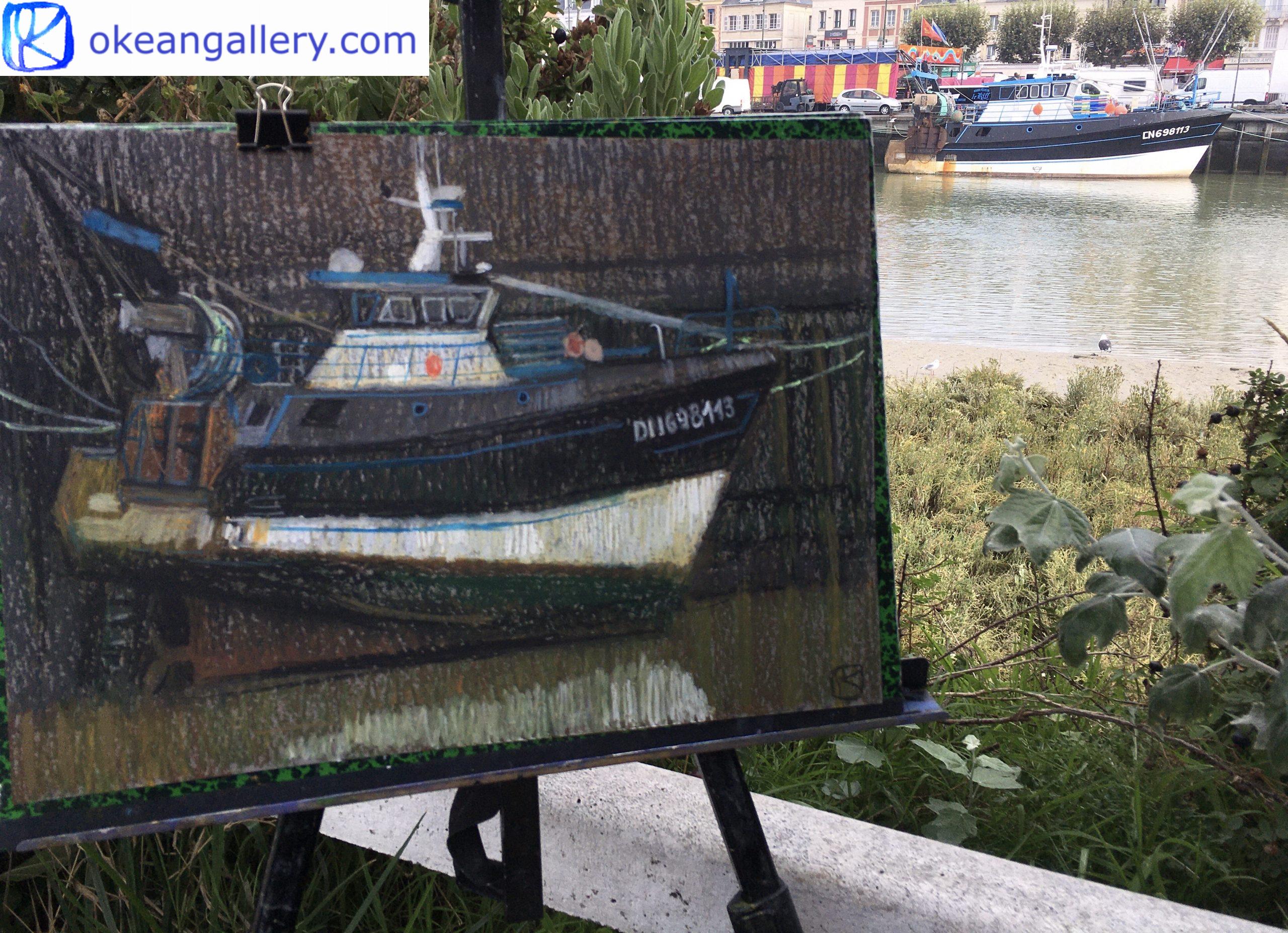 Deprecated: Function WP_Dependencies->add_data() was called with an argument that is deprecated since version 6.9.0! IE conditional comments are ignored by all supported browsers. in /home/funi1970/okeangallery.com/site/wp-includes/functions.php on line 6131 Boat at Low Tide at Trouville-sur-Mer (#449) - Olga Kataeva-Rochford