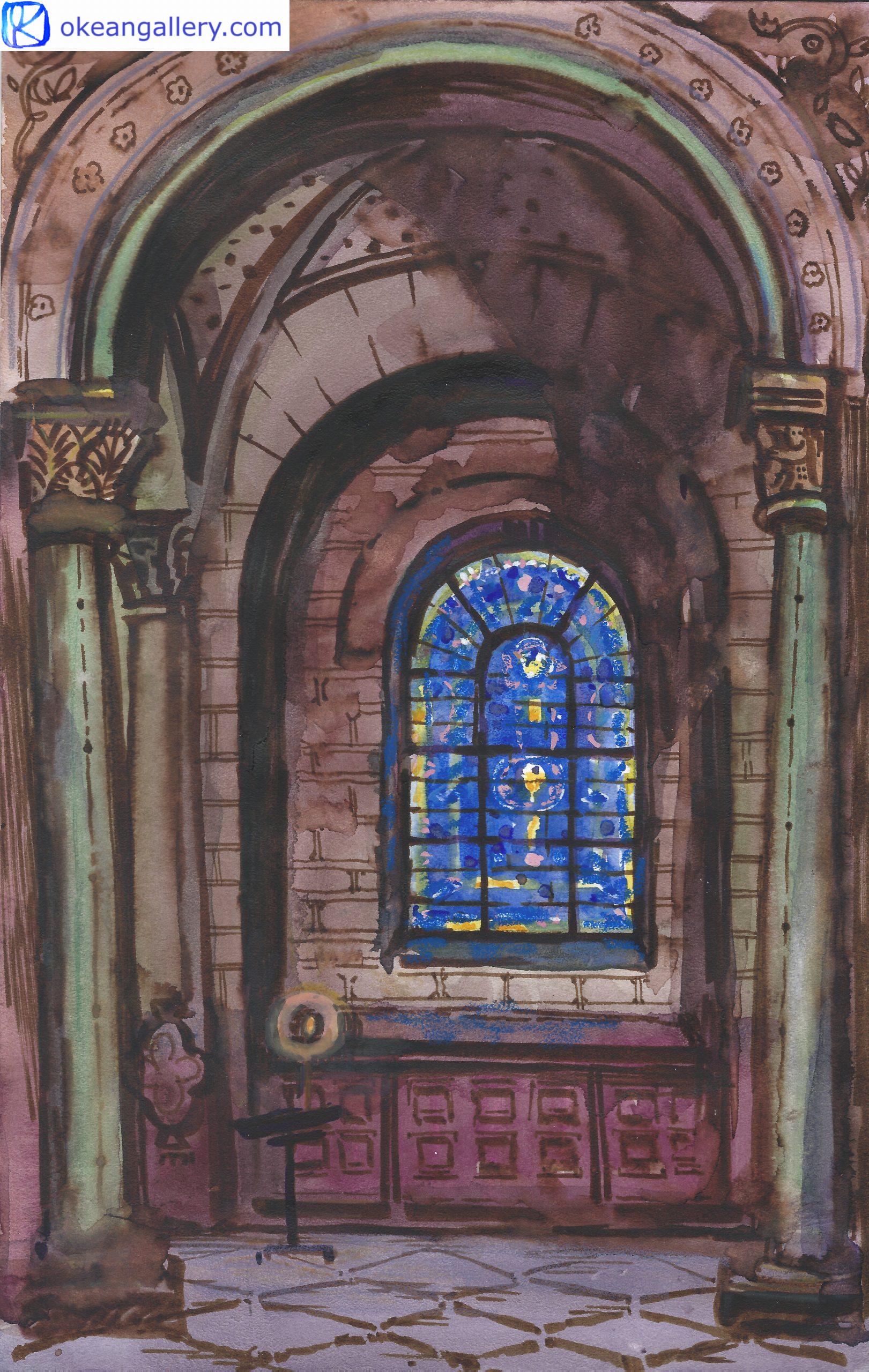 One-of-a-kind medium tempera painting on paper Size : 39,5 x 25,5 cm Format : vertical This lovely plein air painting was created using the finest “Stained Glass Window of the Saint-Séverin Church in Paris (#509)”