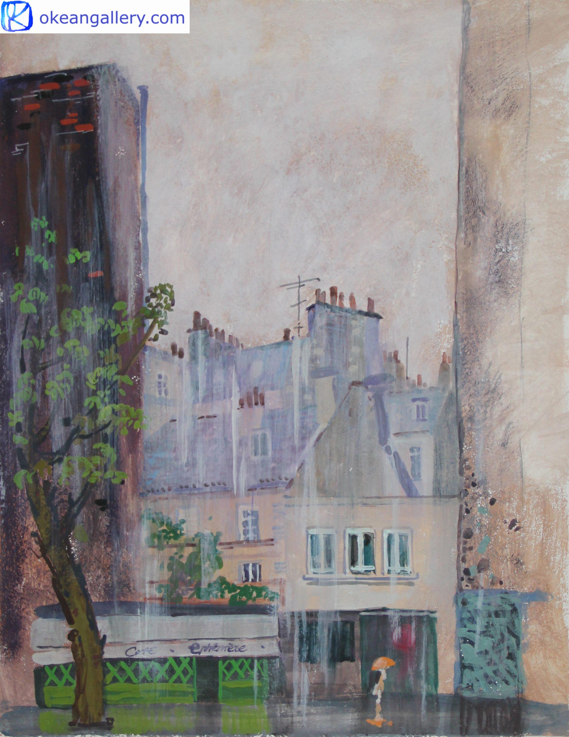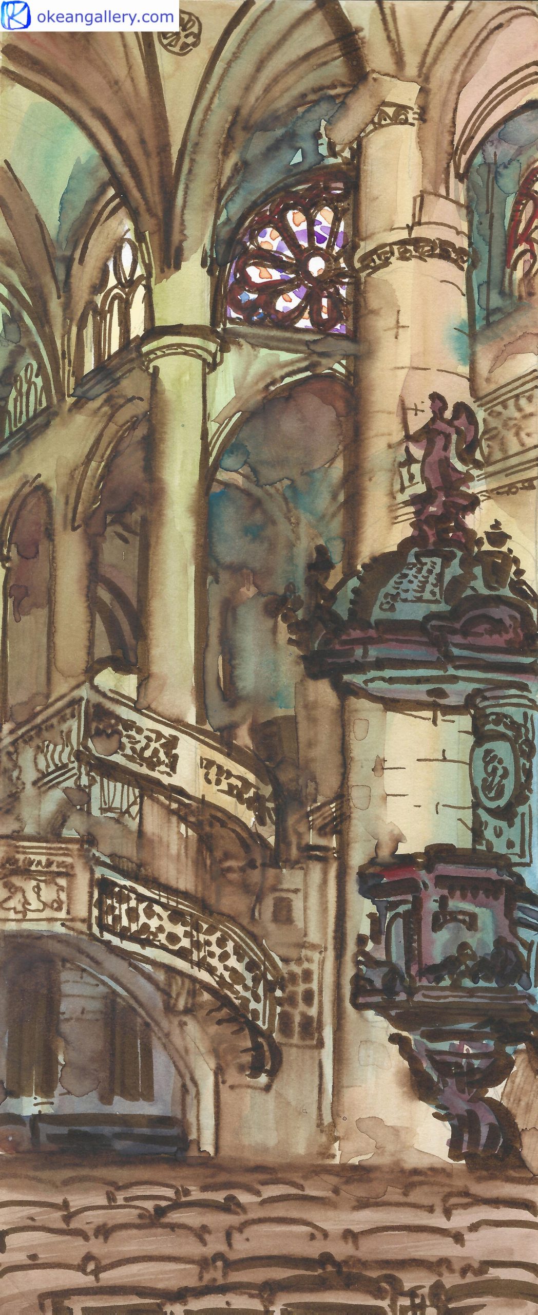 One-of-a-kind mixed media painting on paper Size : 30 x 12,5 cm Format : vertical The passe-partout is optional, offered by the artist. Its dimensions “Saint-Etienne-du-Mont Church (#106)”