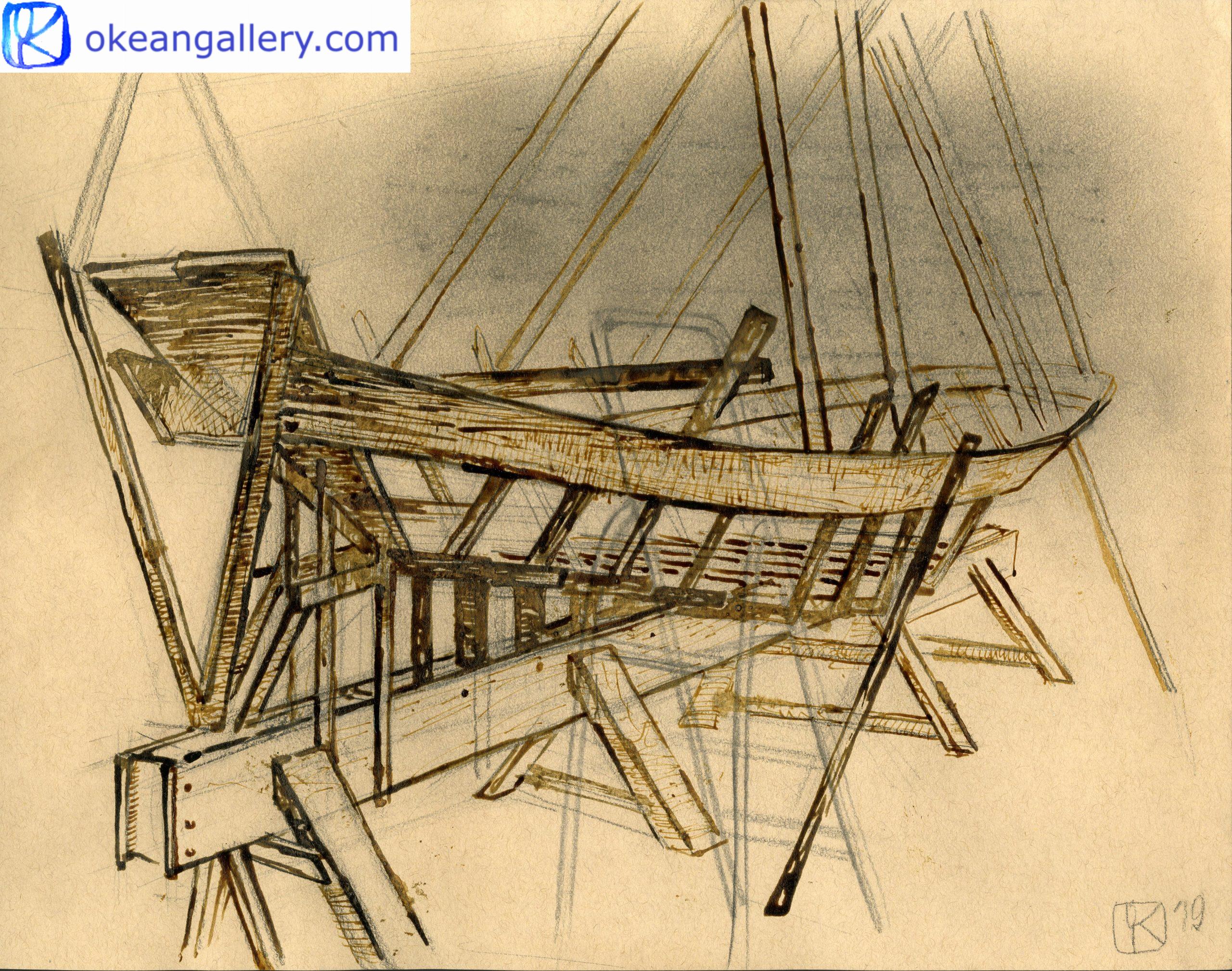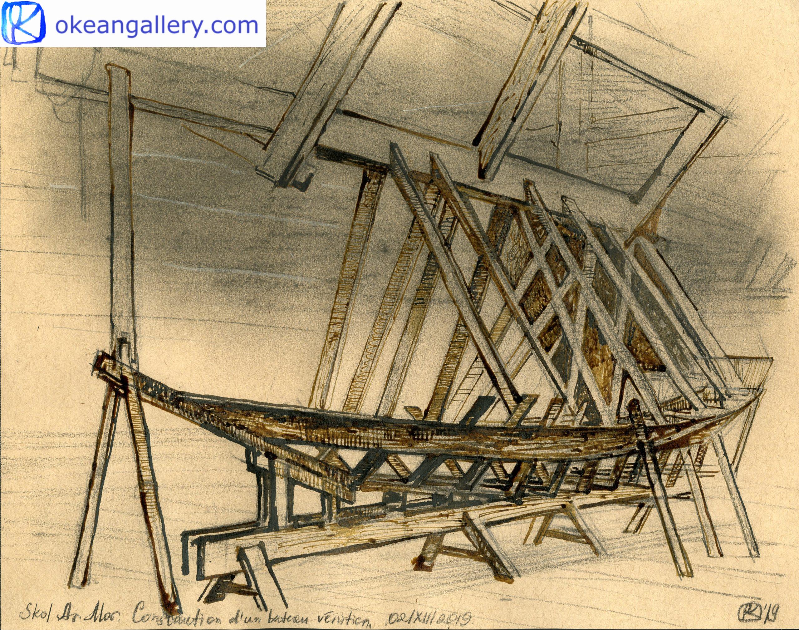 Maritime drawings from the sketchbook realized at the wooden boat-building school Skol Ar Mor, an International Center for Traditional Maritime Skills located in Mesquer (France).